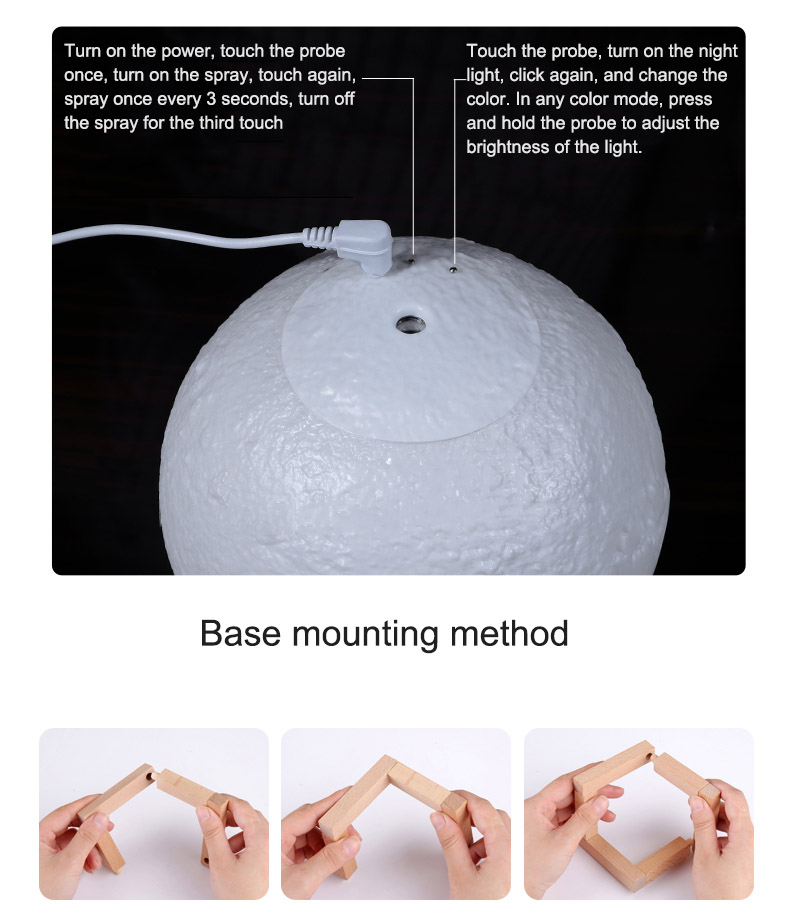 Night light operation: Night light operation: touch the night light control switch metal head, control and adjust the light, each time the touch converts the light color, white-yellow-warm white-off, and then cycle. At the same time, press the gold metal head to adjust the brightness of the light (long press to lighten, release and then press and darken).